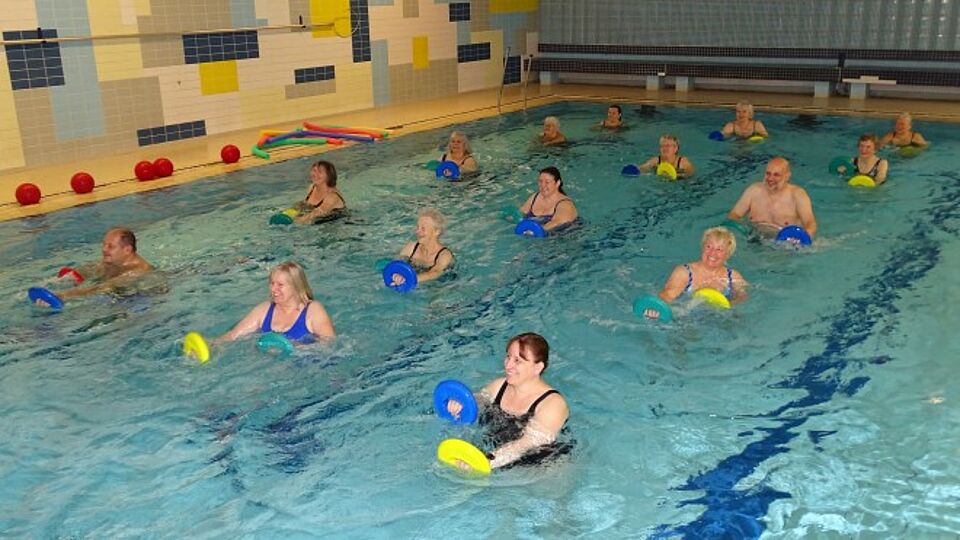 Die lizenzierte Wassergymnastik-B-Trainerin Sabine sorgt für ein gelenkschonendes abwechslungsreiches Programm, welches perfekt als Ausgleich zum Büroalltag geeignet ist